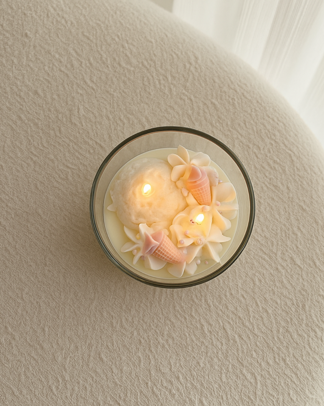Inspirada en la cremosidad irresistible de un helado casero, esta vela es una invitación a disfrutar lo simple: un momento, una pausa, una cucharada de calma.