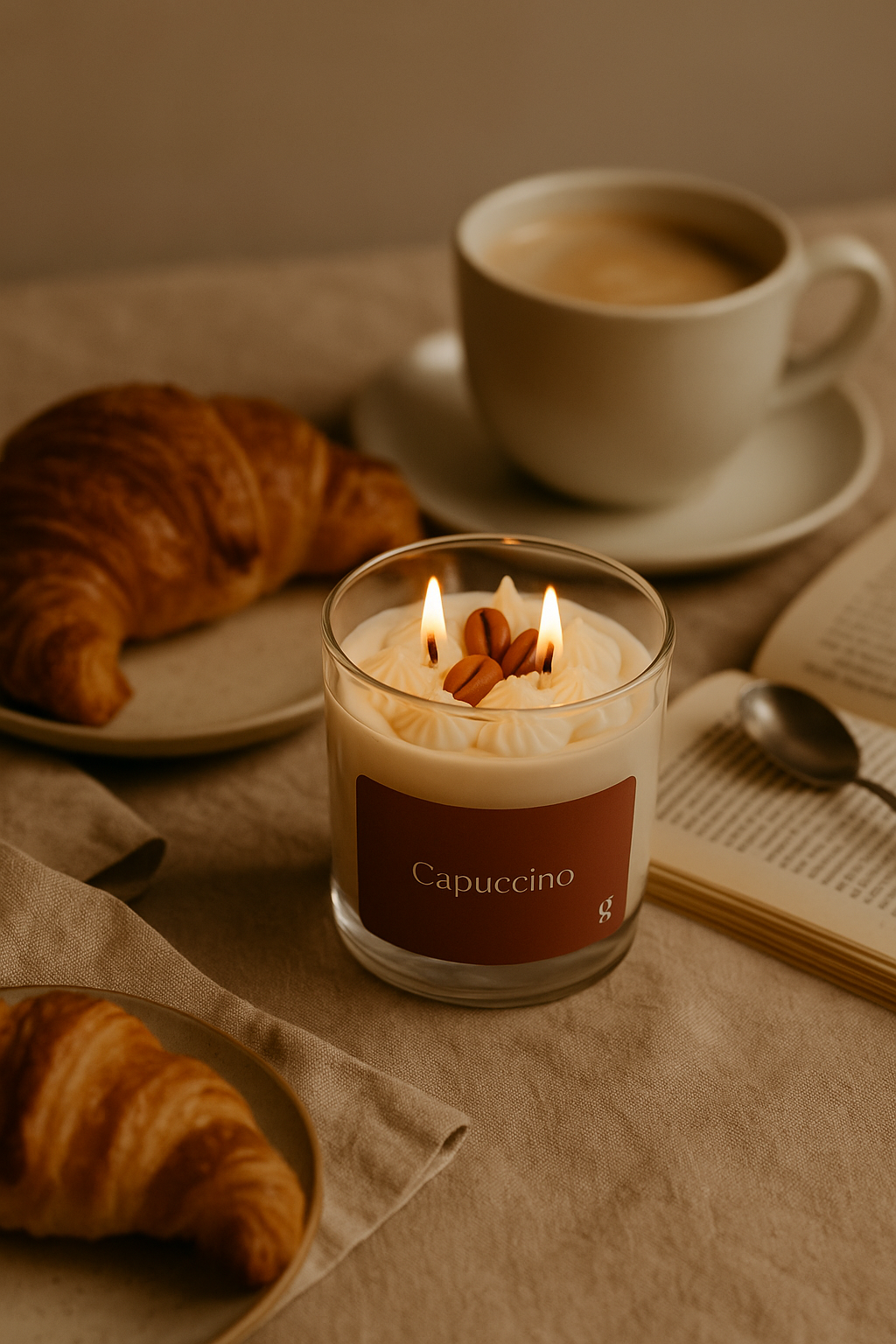 Ideal para ambientes cálidos, personales o de trabajo, donde el aroma a café invita a relajarse o a inspirarse.