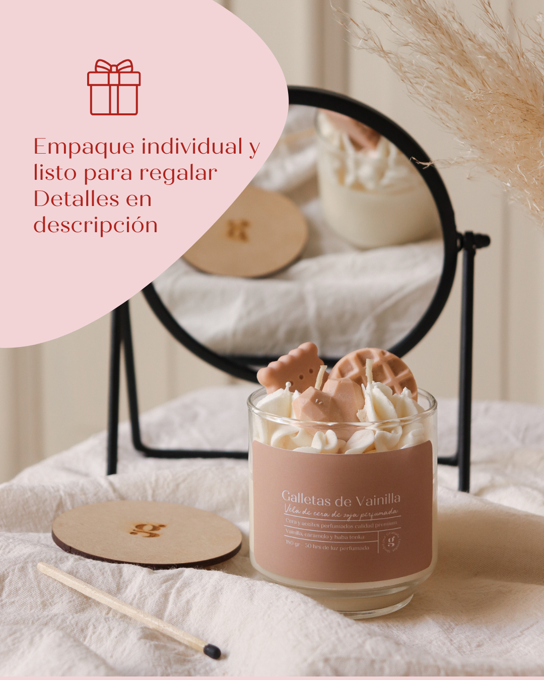 Cada vela se entrega lista para obsequiar, con:
