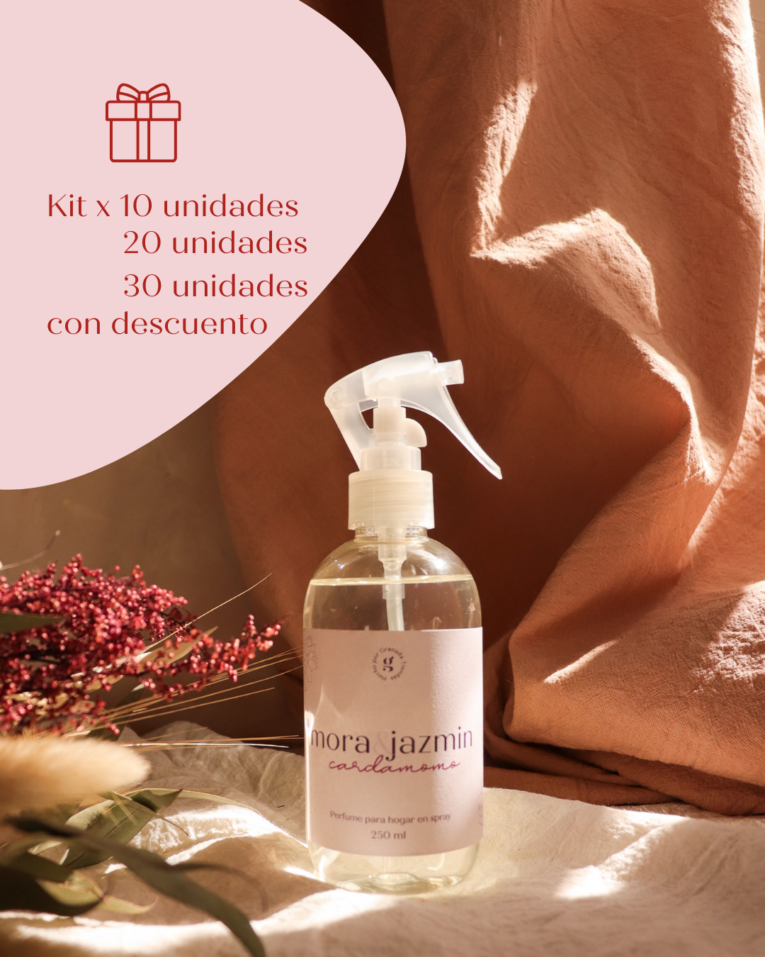 Cada spray se entrega listo para obsequiar, con: